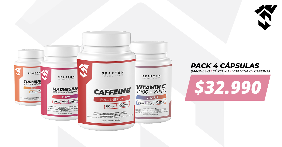 PACK CÁPSULAS CAFEÍNA + MAGNESIO + CÚRCUMA + VITAMINA C